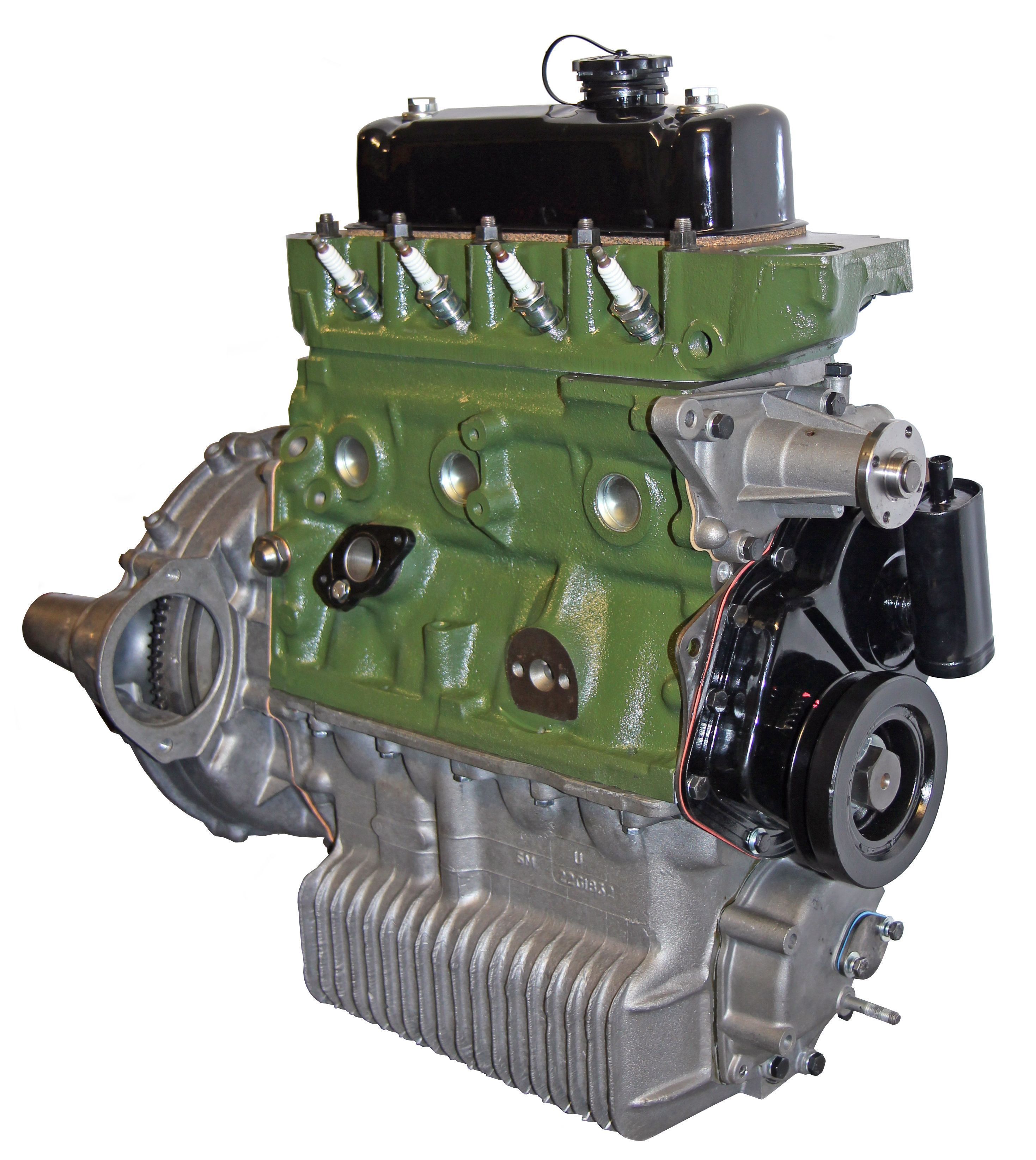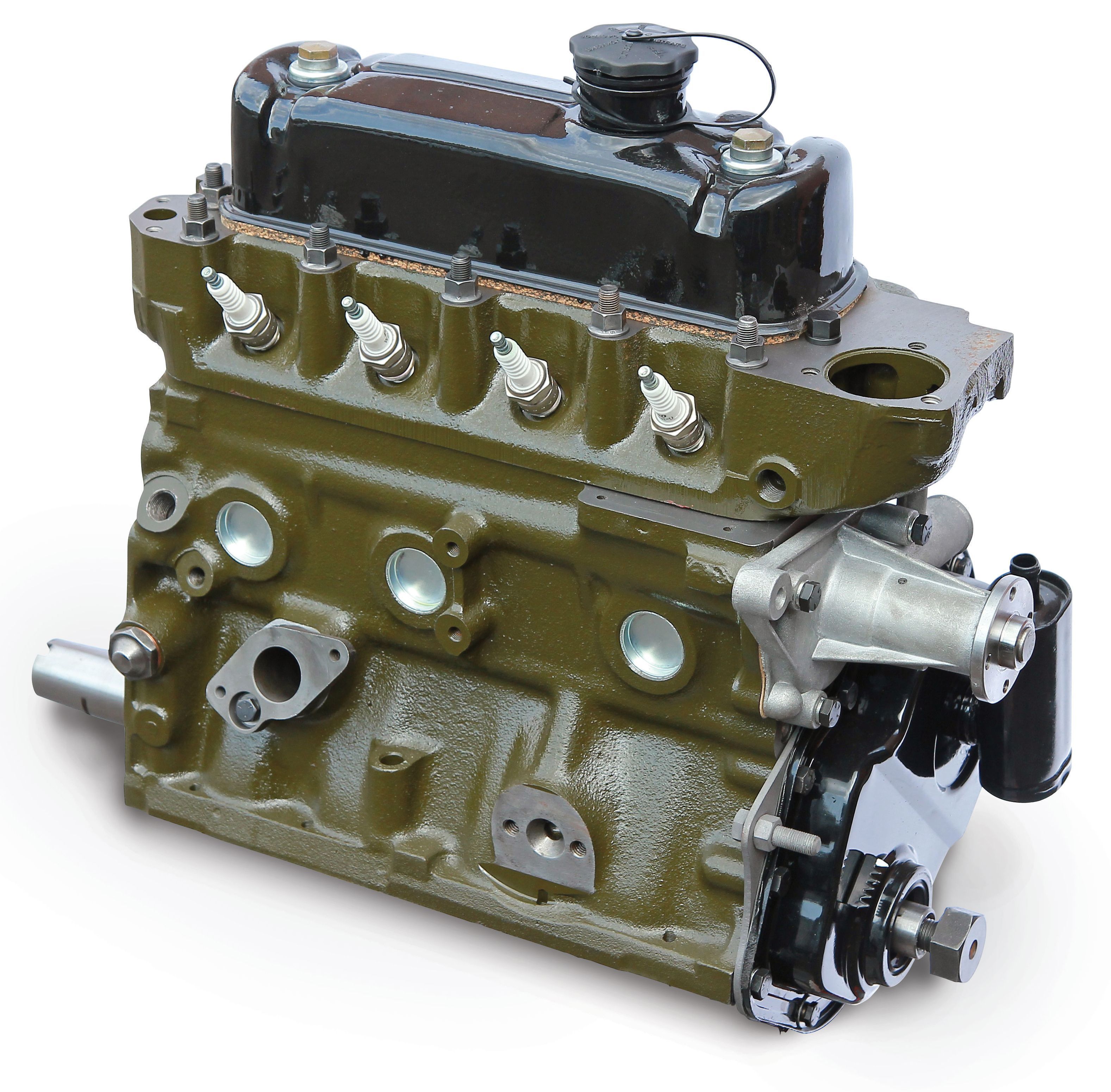 Bolt and stud threads are cleaned. Any damaged threads are replaced. The cylinder blocks are rebored and then honed to give the essential cross hatch micro finish. All gasket surfaces are machine refaced producing the correct surface finish and accurate deck height. New cam bearings, core plugs and oil gallery plugs are then fitted and the block is painted in the colour of your choice, (British Racing Green, Red, Black or Blue) using special high temperature engine paint.